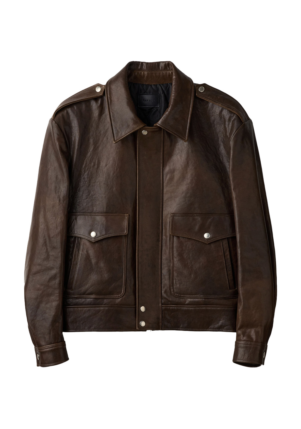 (세비지) Single Leather Bomber Jacket - Black (RESTOCK)