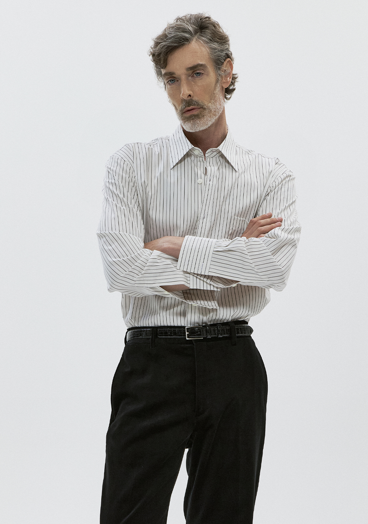 - 블랙 컬러 크로코다일 엠보 패턴의 레더 스트랩