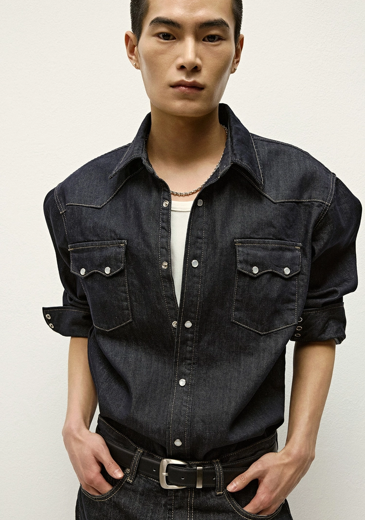 (세비지)Denim Western Shirts - Dark Blue