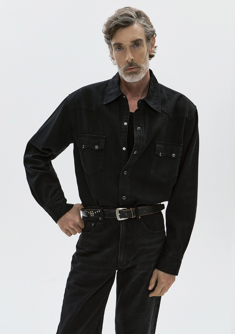 (세비지) Denim Western Shirts - Washed Black