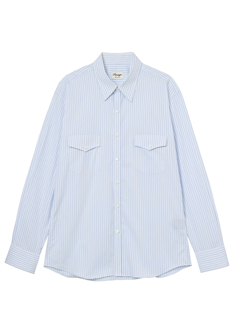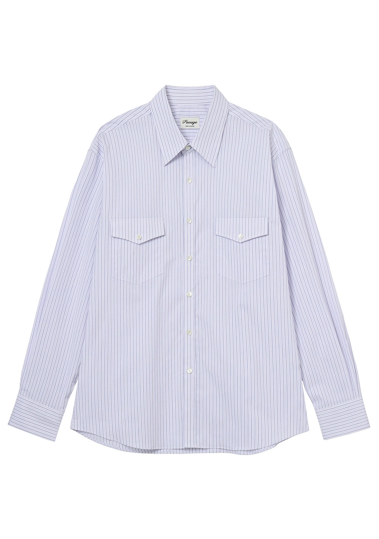 (세비지) Stripe Officer Shirts - Blue