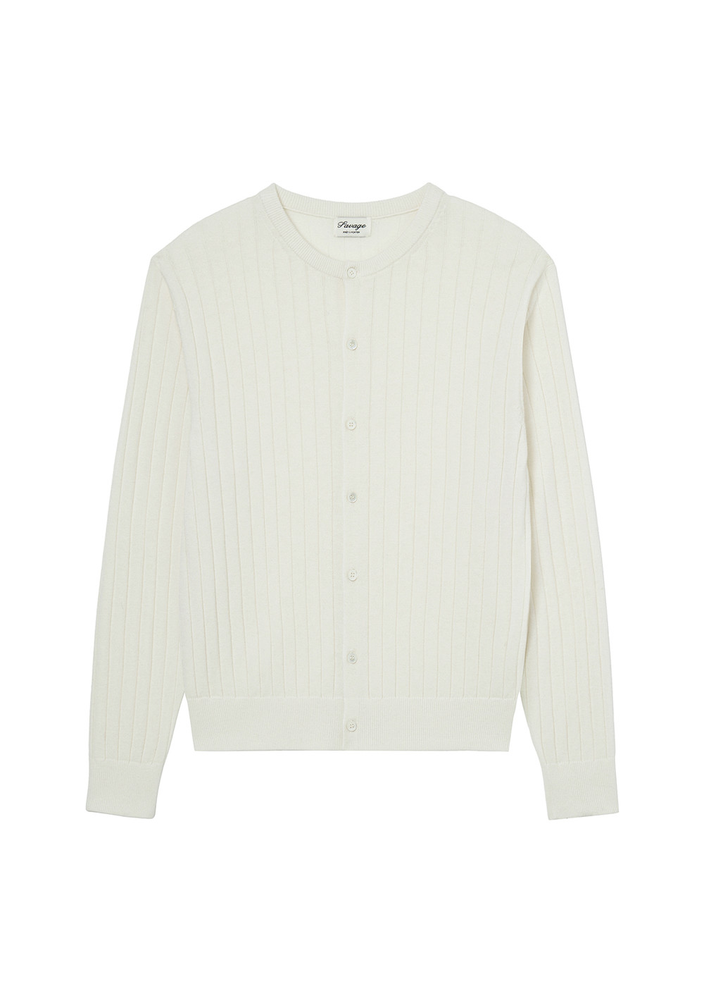 (세비지) Round Neck Ribbed Knit Cardigan - Ivory