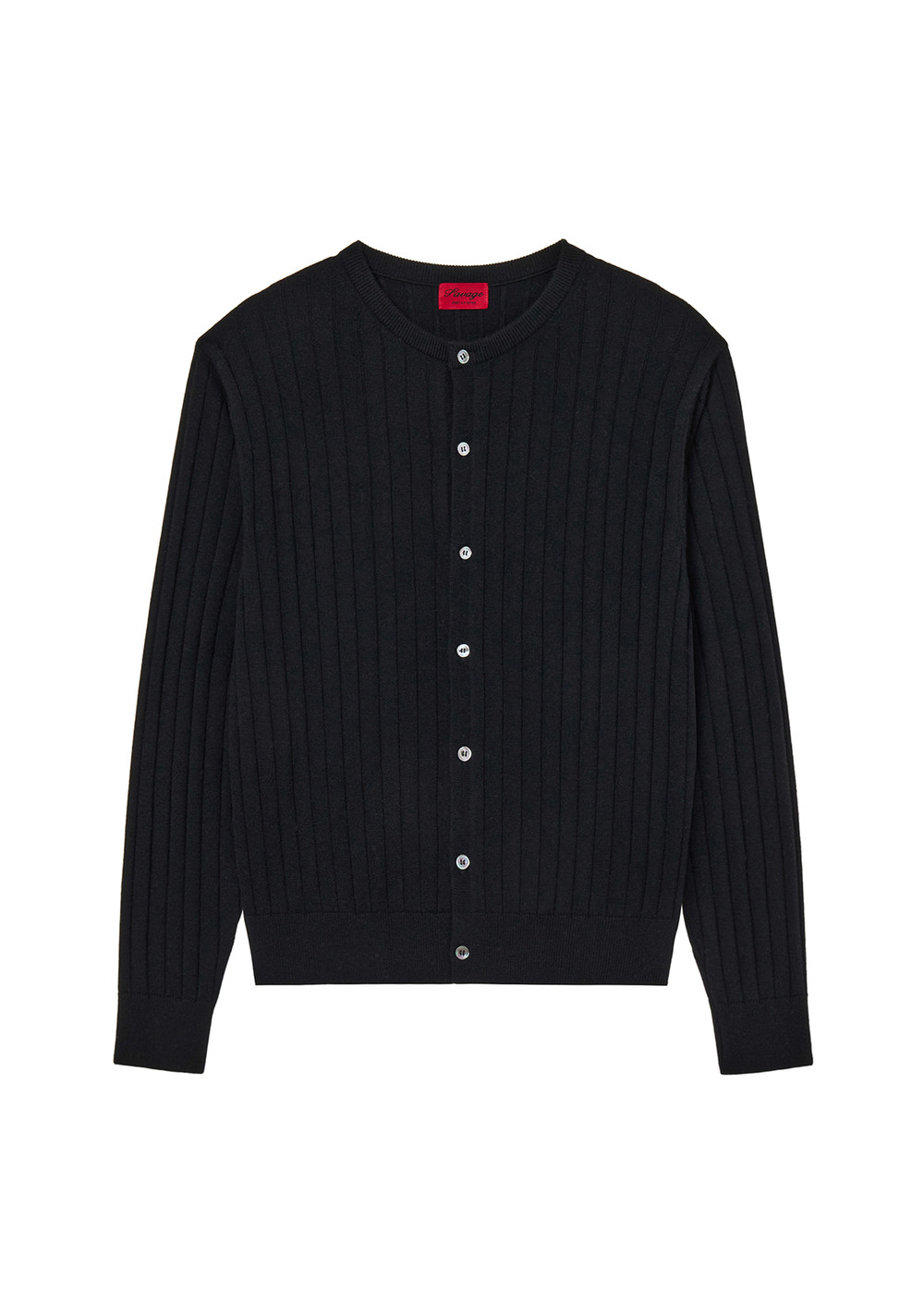 (세비지) Round Neck Ribbed Knit Cardigan - Black