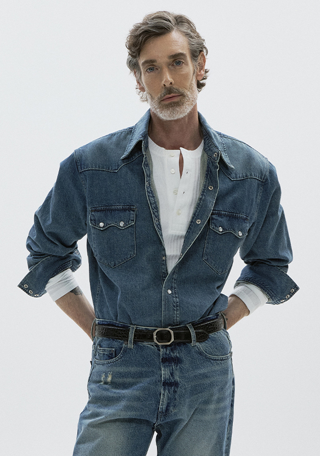 - 포인트 칼라, 요크 디테일, 스냅 버튼 적용