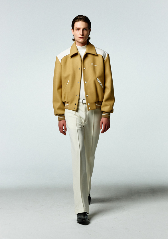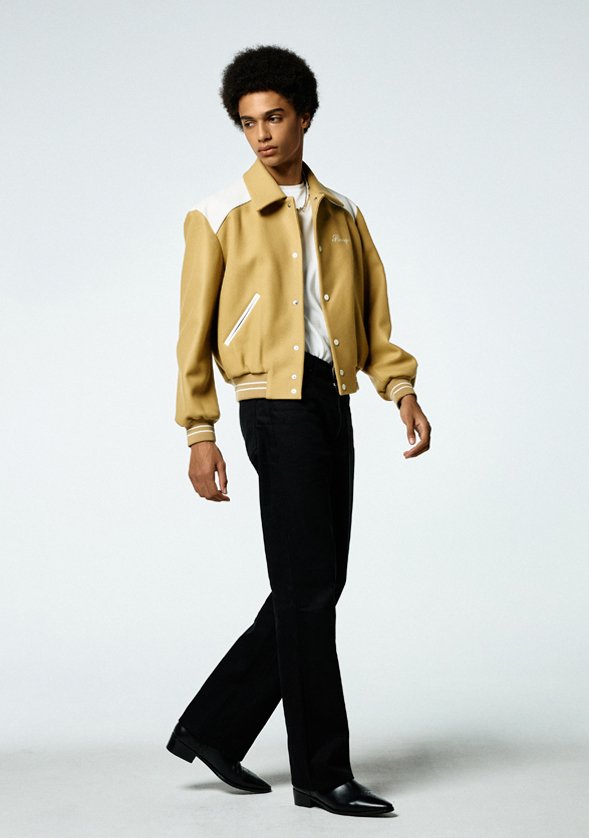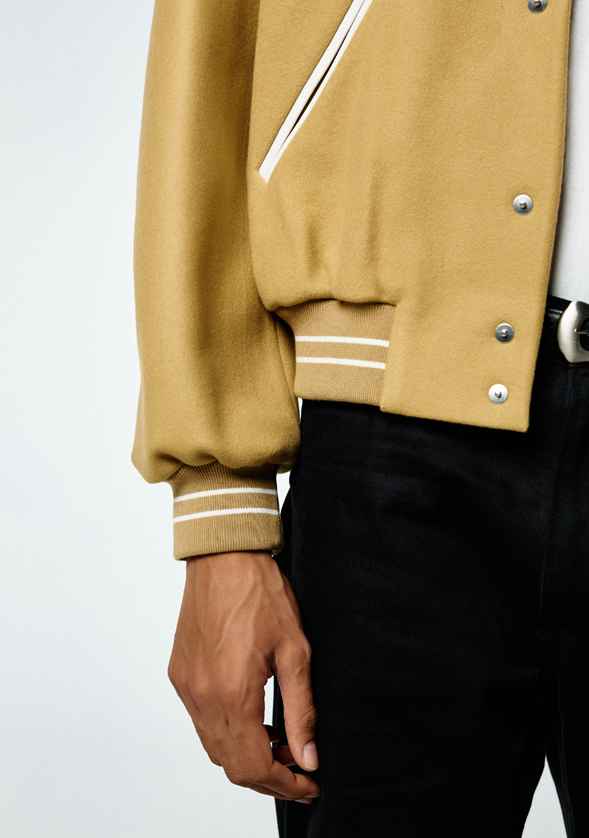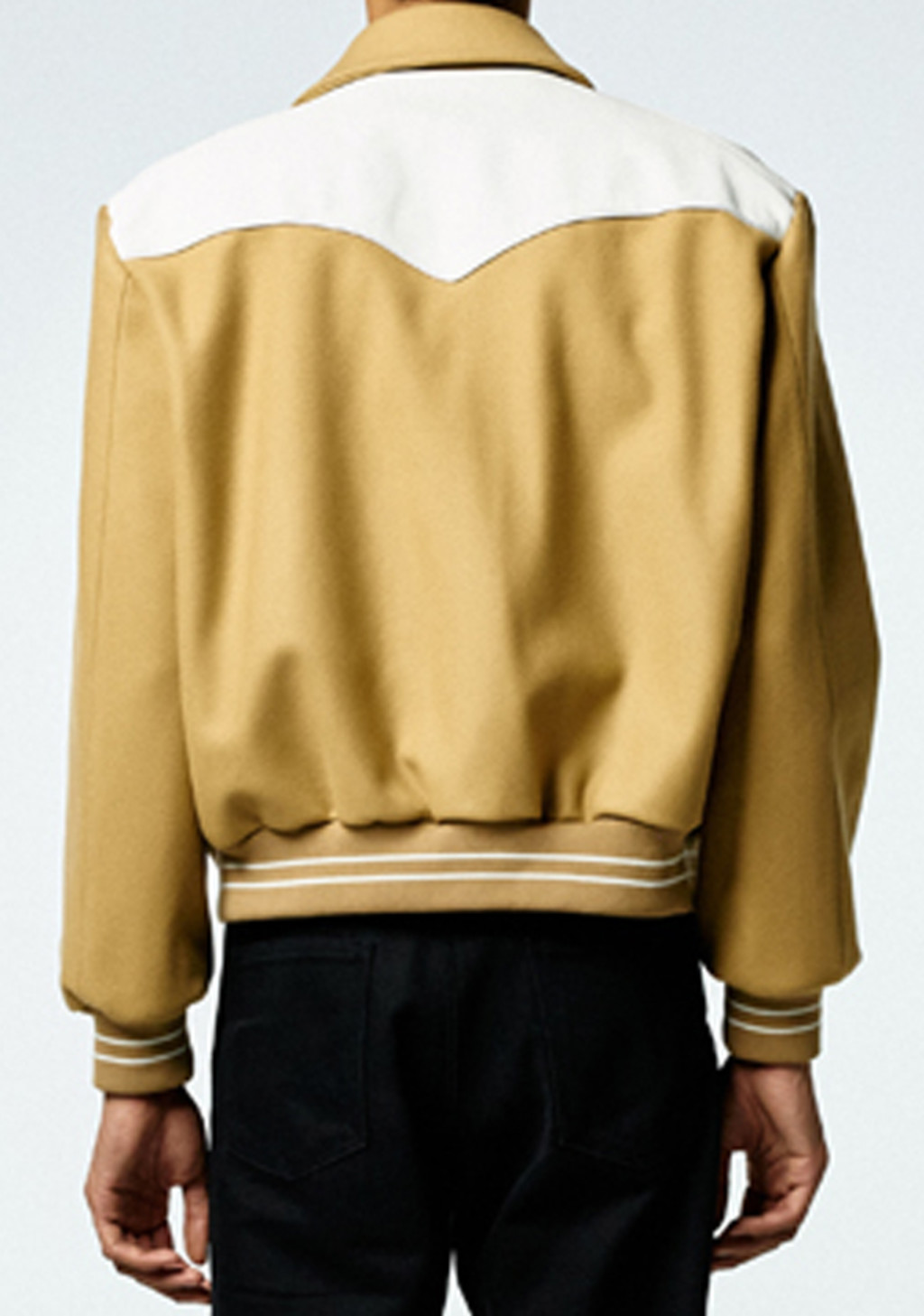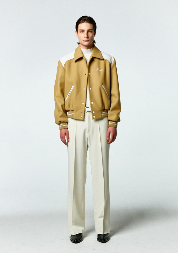 자체적으로 개발한 800g대의 Cashmere + Wool 블랜딩 원단을 사용 하였습니다. 초겨울까지 착용할 수 있는 두께감이며, 여유있는 어깨 사이즈와 대비되는 크롭한 기장감으로 활동성 높은 착용감과 남성적인 실루엣을 자랑합니다.