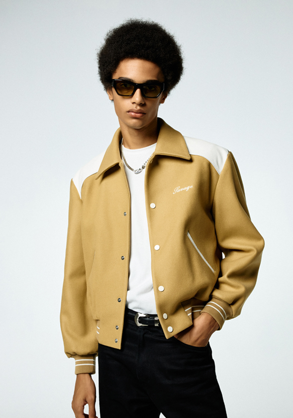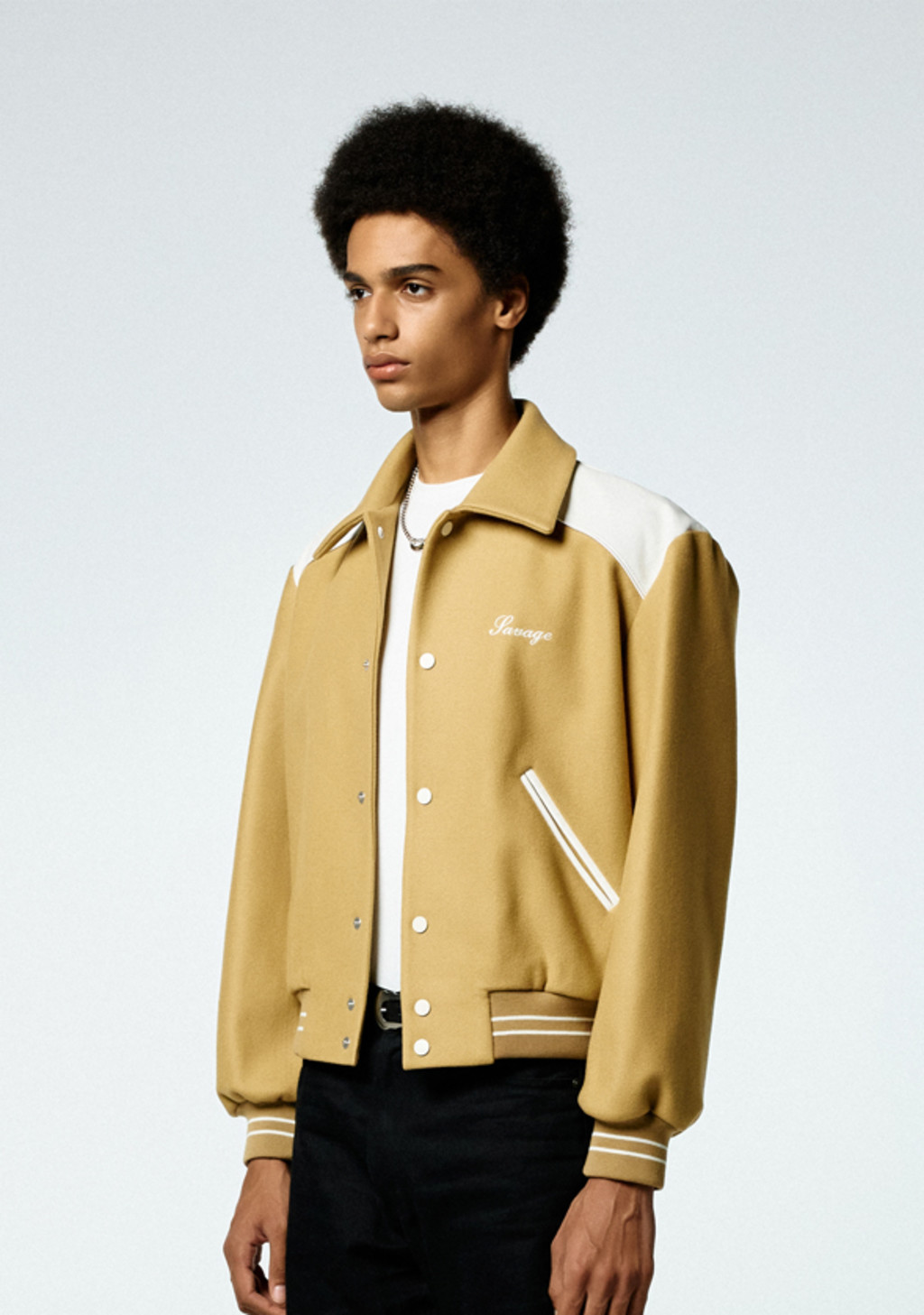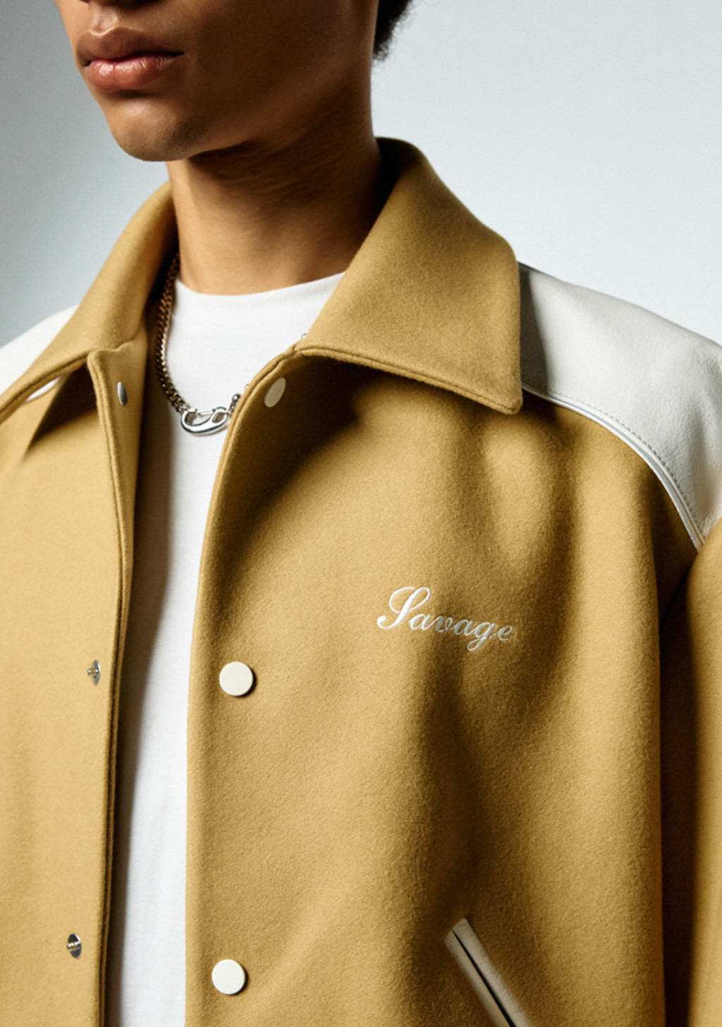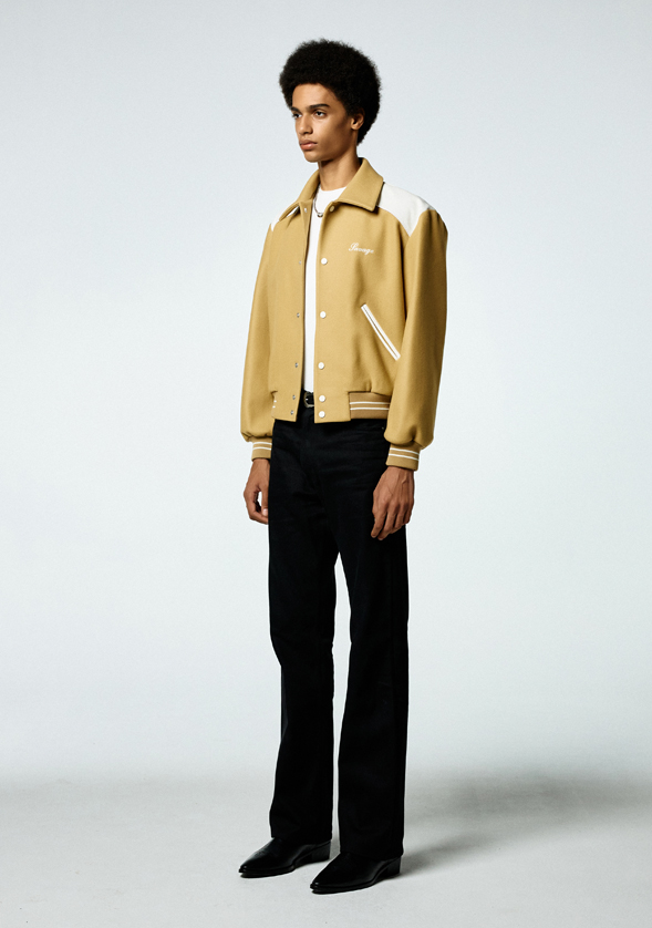 자체적으로 개발한 800g대의 Cashmere + Wool 블랜딩 원단을 사용 하였습니다. 초겨울까지 착용할 수 있는 두께감이며, 여유있는 어깨 사이즈와 대비되는 크롭한 기장감으로 활동성 높은 착용감과 남성적인 실루엣을 자랑합니다.