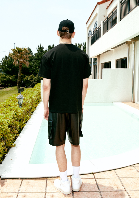 (세비지) Faux Leather Cargo Shorts - Black