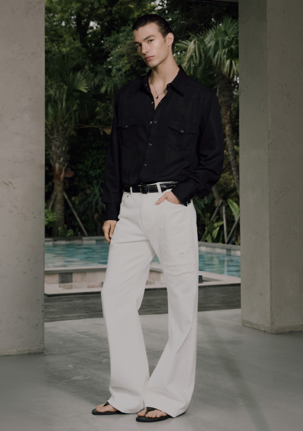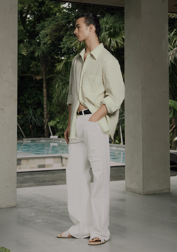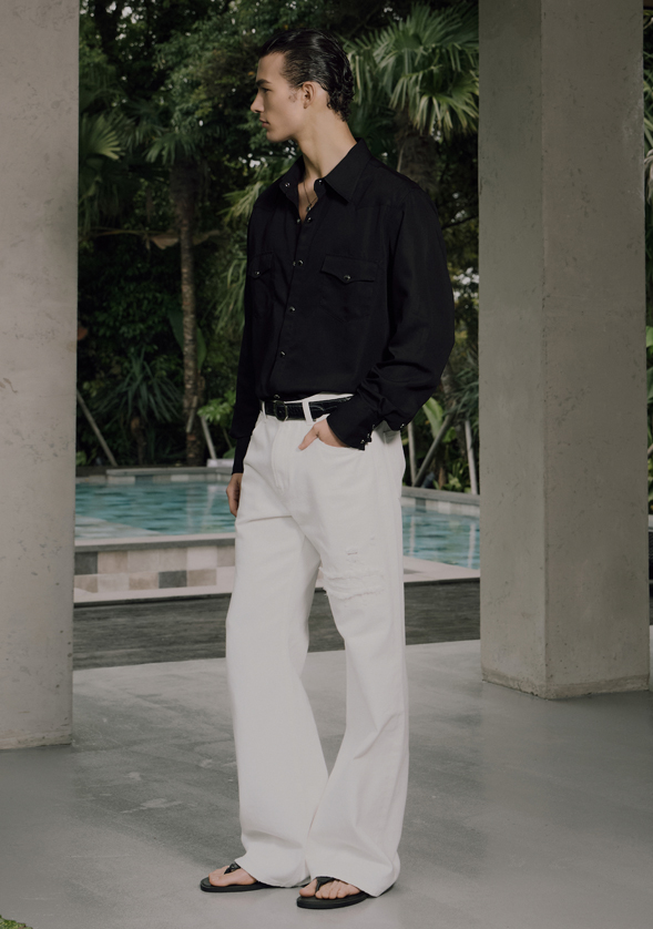 - DETAILS : 5-Pockets, SAVAGE 로고 메탈 부자재 사용, croc-embossed 로고패치, Ripped 디테일