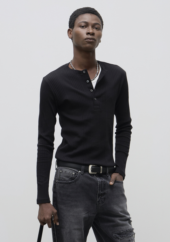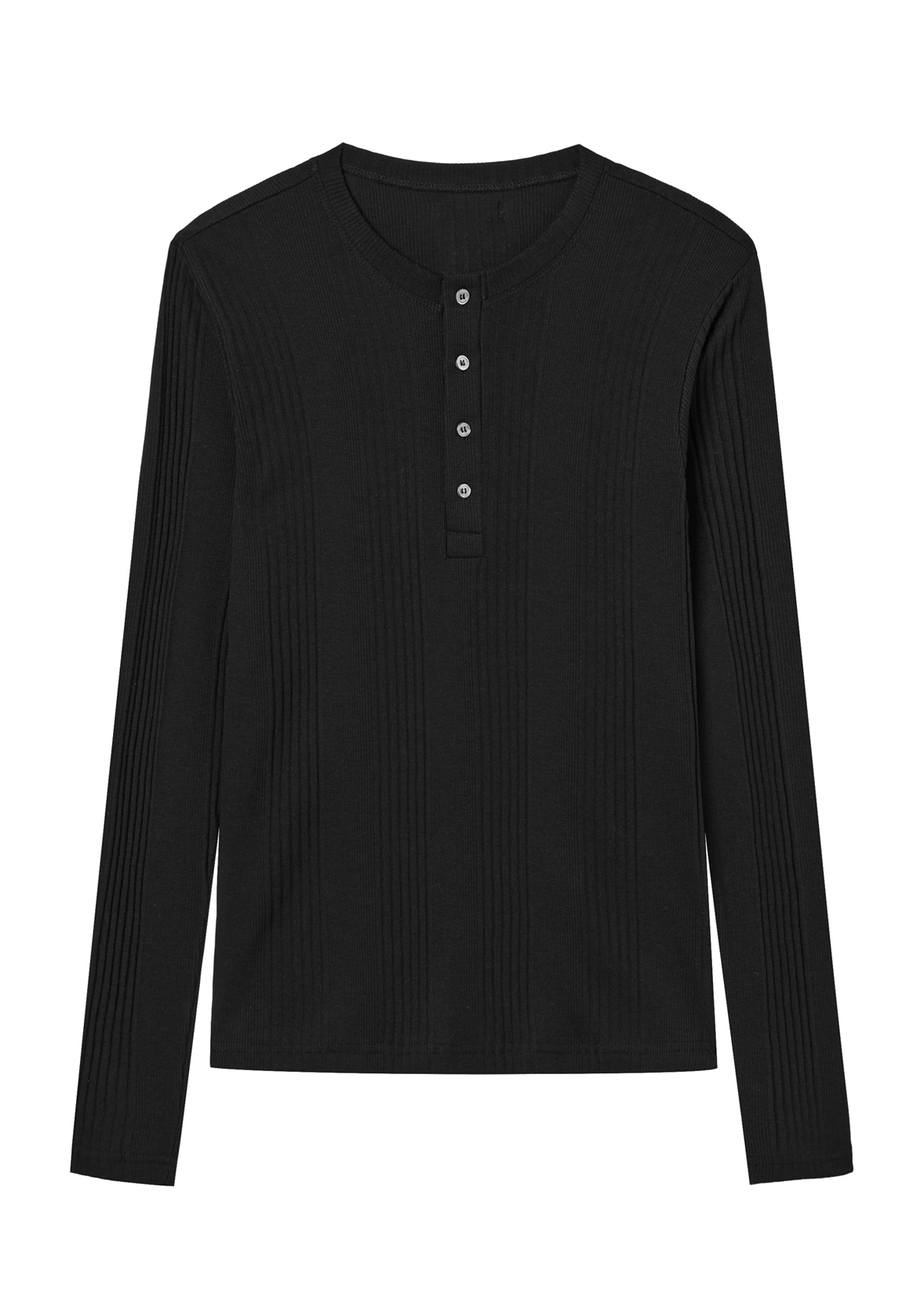 (세비지) Slim Fit Henley Neck Jersey Long Sleeve - Black