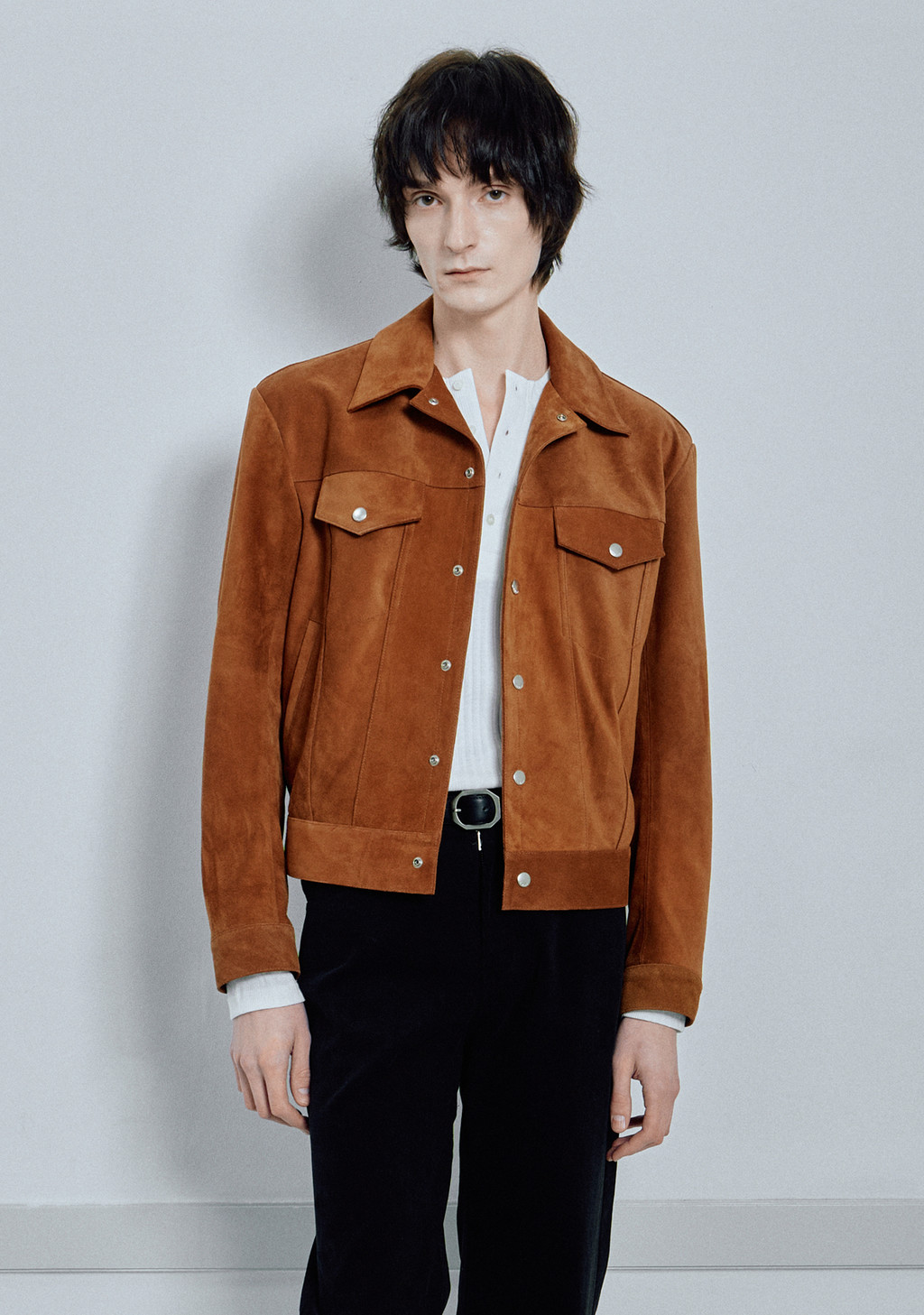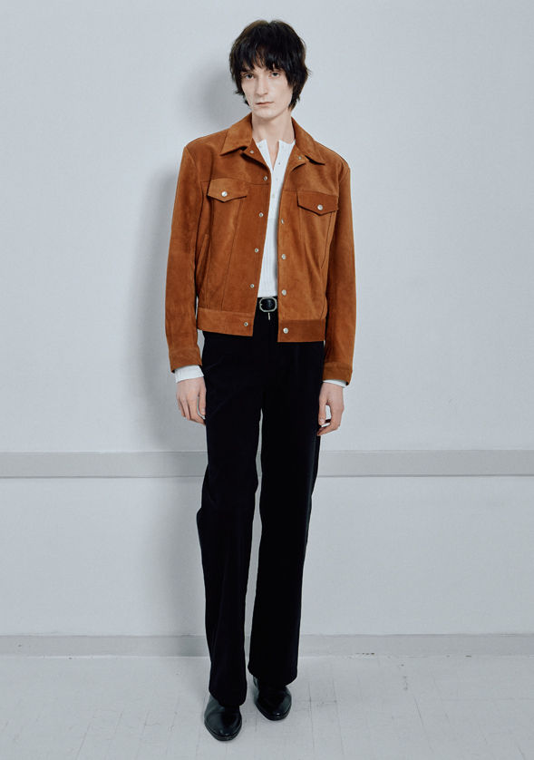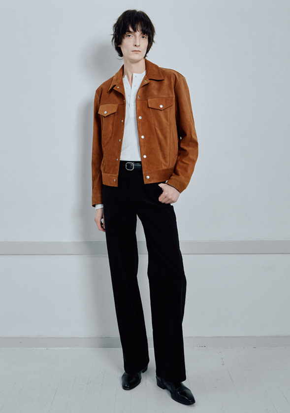 좋은 품질의 이탈리아산 Lamb Skin을 사용하여 제작한 트러커 형태의 스웨이드 재킷 입니다. 양가죽 특유의 고급스럽고 부드러운 터치감을 자랑합니다.