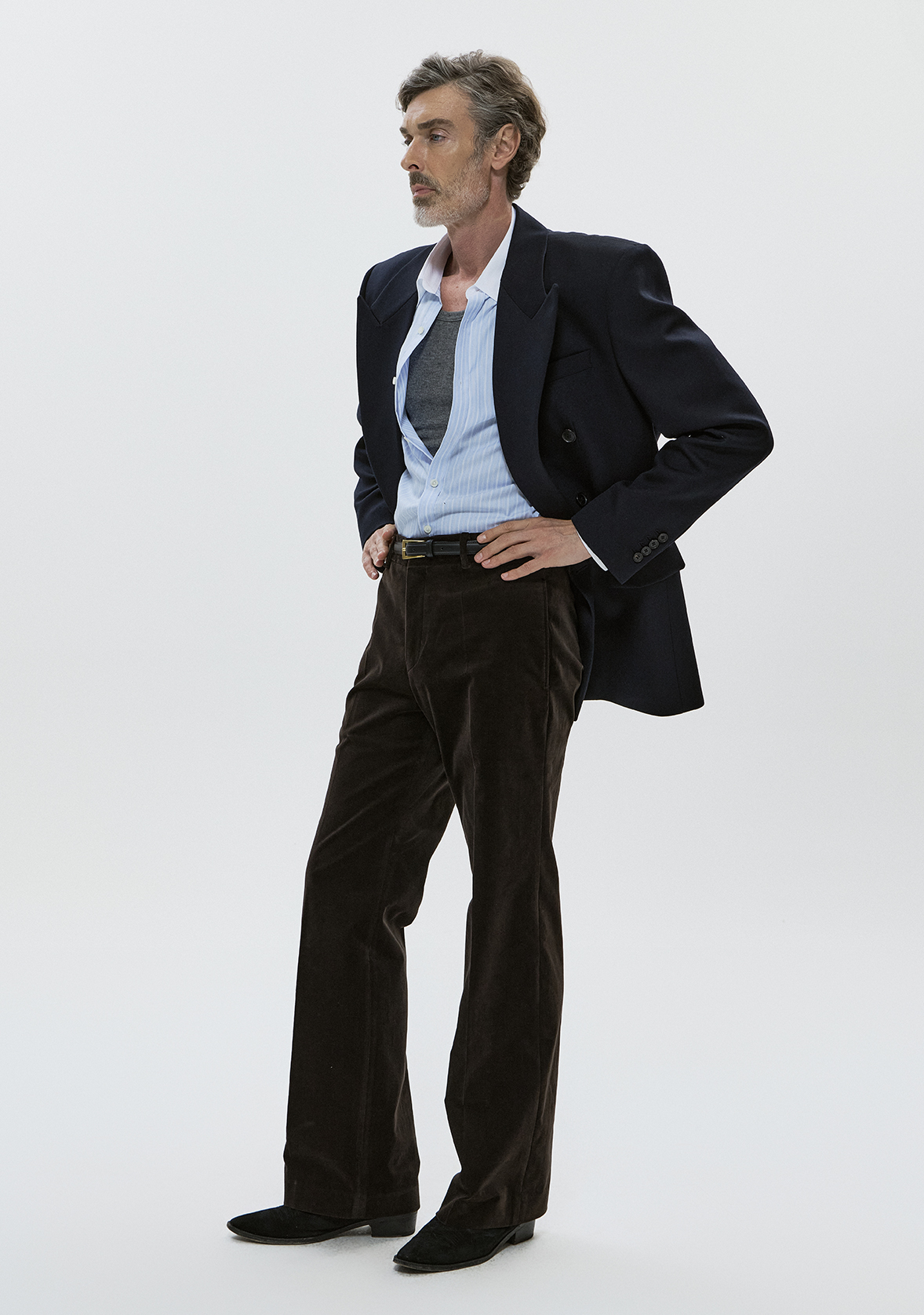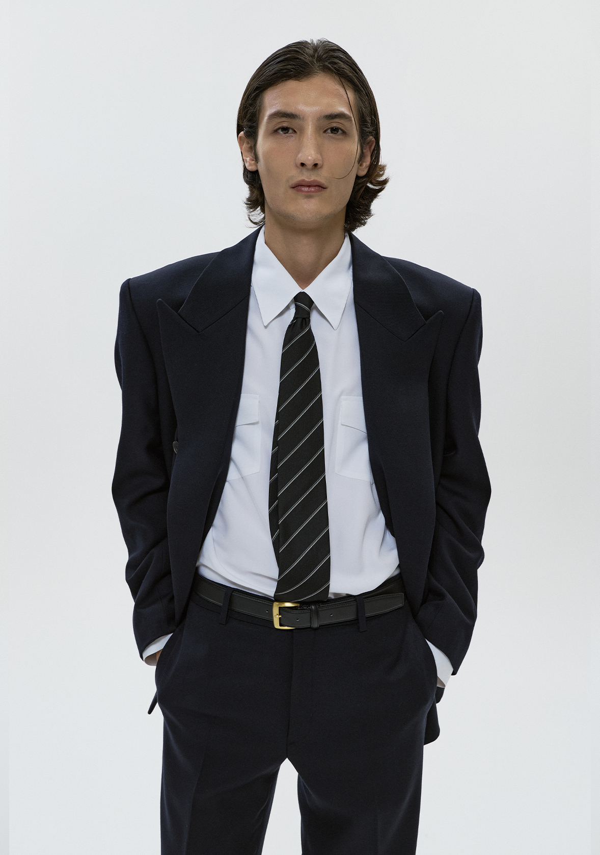 - 남성적인 라펠 쉐입, 탄탄하게 떨어지는 실루엣