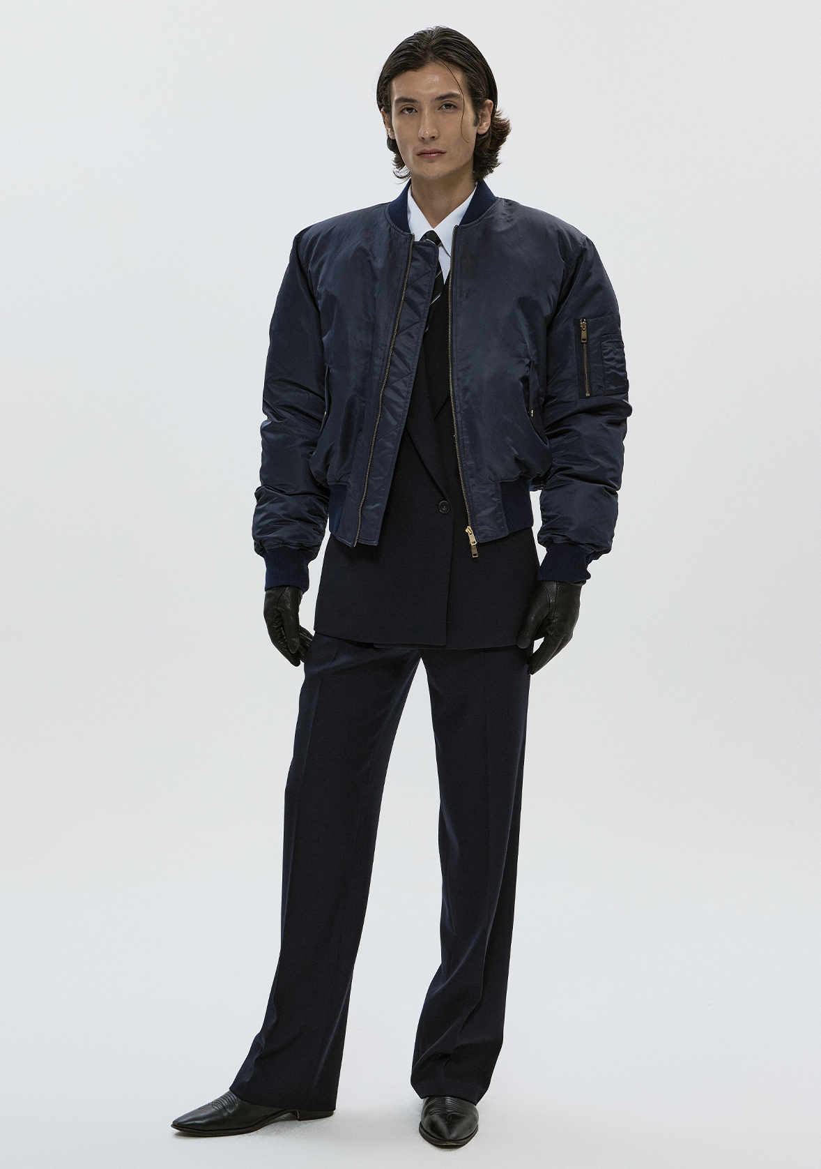 - 세미 오버사이즈 핏, 여유있는 어깨 사이즈, 크롭한 기장감