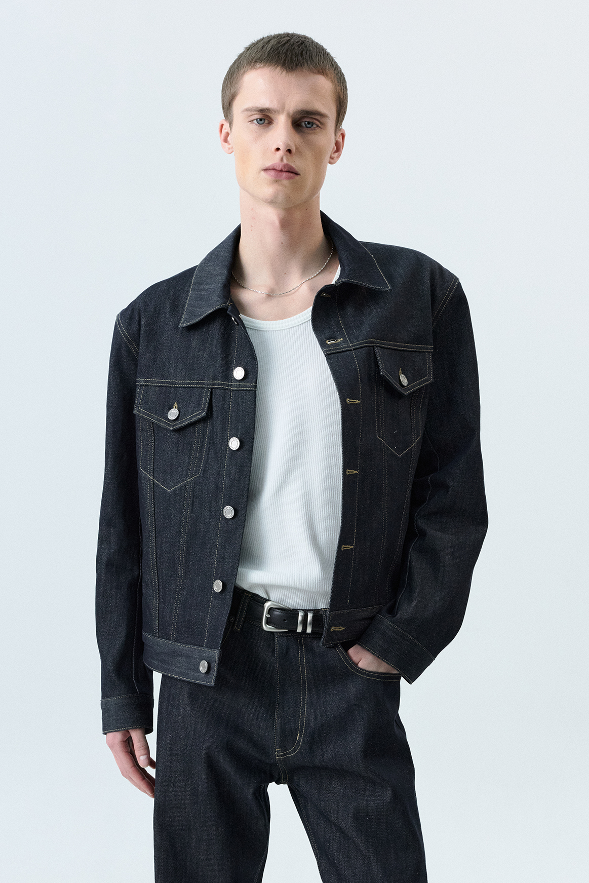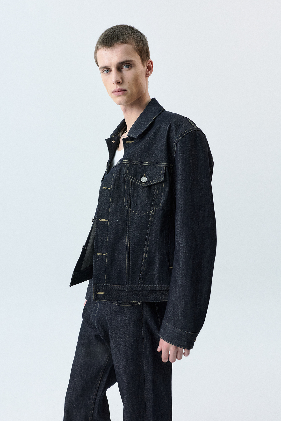 - 오픈칼라, 등판 요크, 트러커 형태의 디자인
